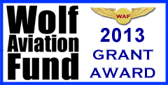 We are occasionally asked for logos to be used by groups promoting the Fund or their Wolf Grant projects or for other purposes. Many groups which have received Wolf Fund awards have found that by having the "Grant Award" logo on their website and their funding solicitation materials gives them additional credibility. Because of the high visibility and reputation of the Wolf Aviation Fund, donors are likely to be more inclined to provide their own additional support. Annual "Grant Award" logos are near the bottom of this page. Other suggested forms might include: "Recipient of a Grant from the Alfred L. and Constance C. Wolf Aviation Fund" "Recipient of a Wolf Aviation Fund Award" or similar notice. Some users employ a copy of our website logos, or use the logo along with the text. We provide logos in several forms: Note: CLICK on a description or logo to download that version! JPEG version square 130 x 130 14 kb: